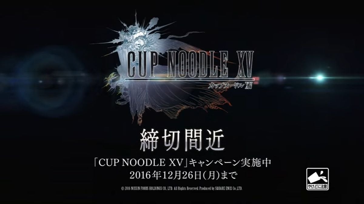為了記念這次事情12月5日Square Enix就公開《CUP NOODLE XV》和《FF15》的對比預告,經過大半個月後官方推出這一個特別的完全版廣告,而片段中一共出現了15種日本的合味道,又不道各位看多少種呢?活動只去到12月26日!(小編:日本的合味道的包裝是香港很久以前的白色杯裝,現時好像剩下日本有以前的包裝產品了。)