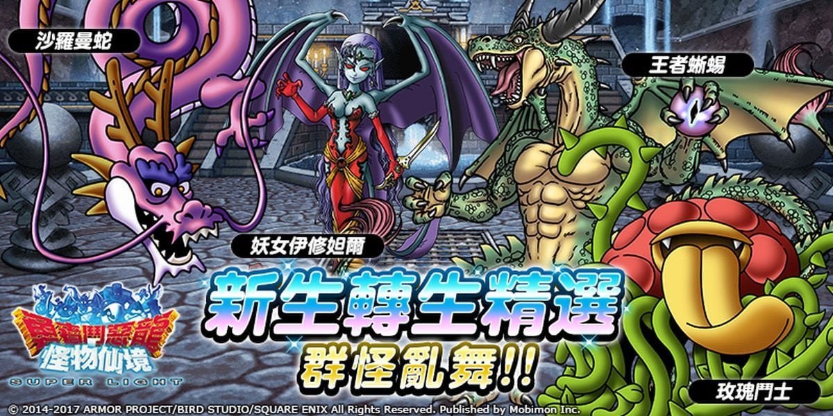 移動怪獸代理SQUARE ENIX日本國民RPG《勇者鬥惡龍 怪物仙境 SUPER LIGHT》由「堀井雄二」總監製、「鳥山明」怪物設計,該系列為《勇者鬥惡龍》第一個海外中文版。