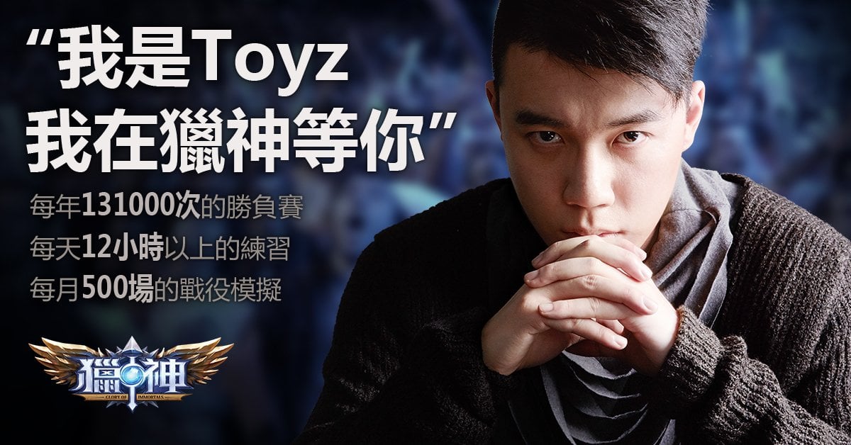 世界級的電競神人Toyz,曾為台灣拿下世界冠軍,官方今(12日)宣布邀請神人Toyz為《獵神》神級代言人。於能接下《獵神》代言的Toyz表示自已很開心能代言這款專為台港澳玩家打造擁有絕對平衡的《獵神》,也大方對喜愛MOBA的玩家表示他將會不定期上線,歡迎玩家們找他挑戰!