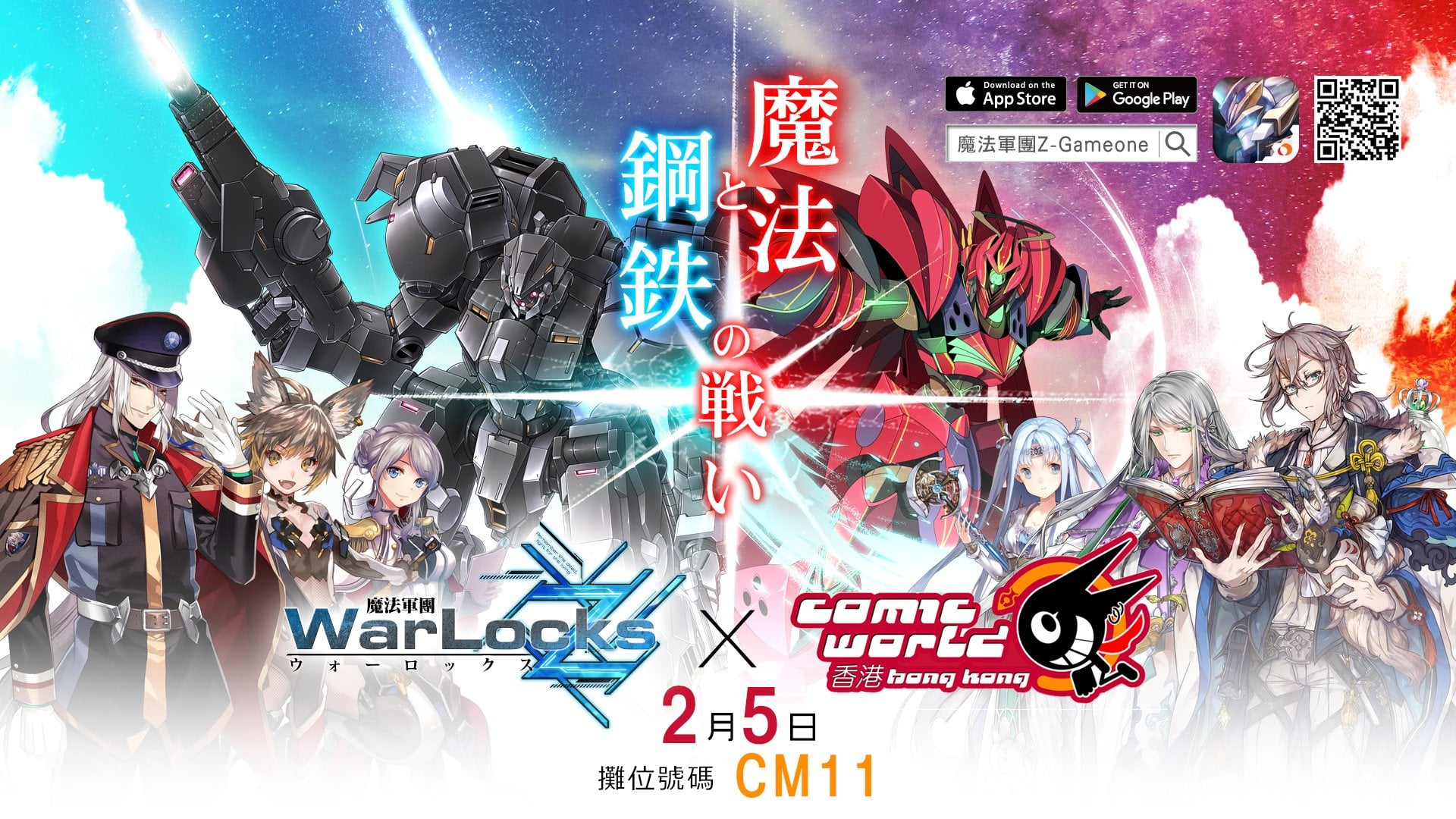 全城哄動,萬人曯目,描繪魔法與鋼鐵的戰爭之手機遊戲《魔法軍團Z》,人氣熱爆全港台!現今已經有超過10萬會員註冊成為傭兵參軍作戰!而在今天,傭兵公會更正式宣佈,將於2月5日進軍「CWHK」建立新據點!只要於當日到達傭兵公會(Gameone)攤位CM11報到,並出示手機已安裝《魔法軍團Z》確認傭兵身份後,即可領取「角色立繪書籤或襟章」乙份!同時香港人氣女子Cosplay組合「9RUSH」也會化身為遊戲中的兩大對立陣營,除了會即場上演魔法與鋼鐵的頂上對決外,更會大送豐富獎品的福袋乙份,所以各位傭兵萬勿錯過!