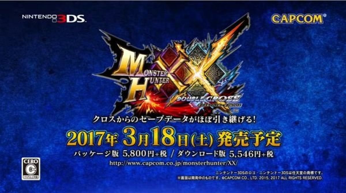 《魔物獵人XX》是系列的新作,遊戲將會在2017年3月18日發售,遊戲將會在2月15日Eshop上推出特別體驗版,玩家需要到時SD卡有300MB的容量方可下載遊戲,同時內容可以引繼到製成版遊戲。