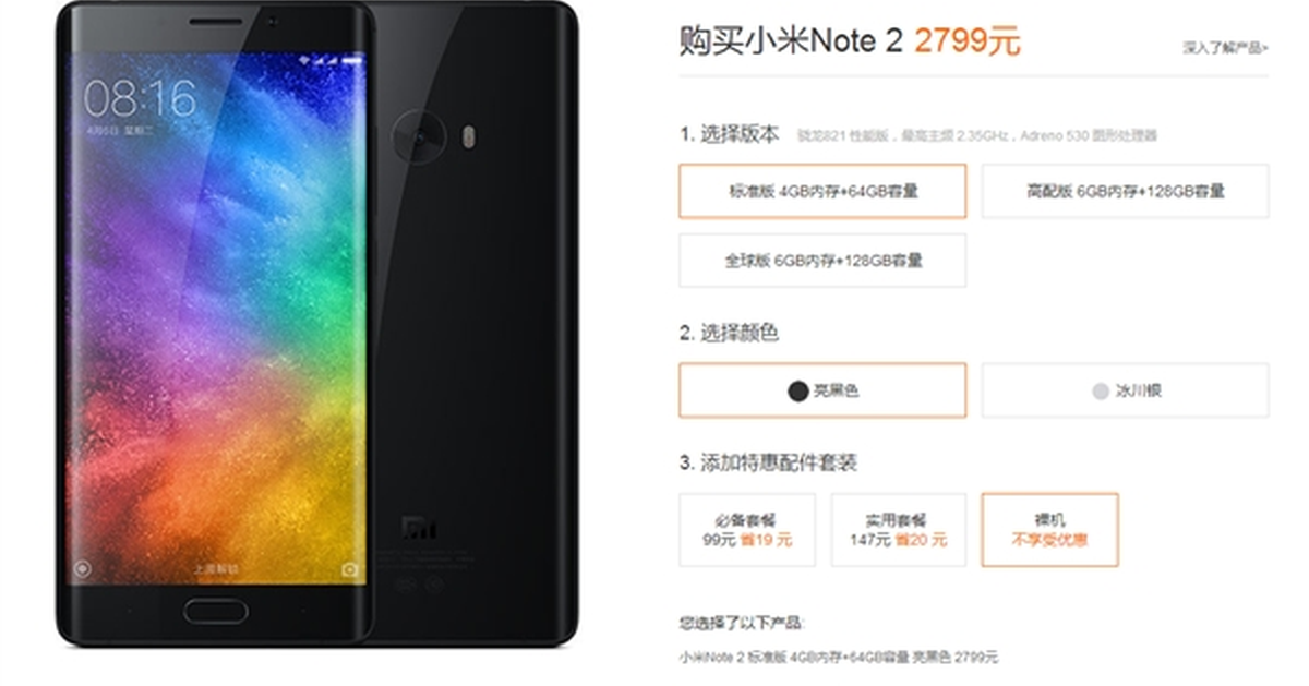 配置方面,該機採用來自LG的5.7英寸雙曲面1080p OLED顯示屏幕,驍龍821處理器,內置4GB記憶體和64GB機身存儲空間,提供前置800萬像素鏡頭和後置2300萬像素鏡頭,電池容量4070mAh,抵買..可惜要回國內買了。
