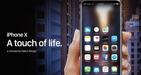 概念設計師Gabor Balogh根據目前的傳聞和分析製作了一組新款iPhone的概念圖,稱之為iPhone X。從設計來看,這款iPhone取消了正面實體Home鍵,額頭基本消失,原來下巴的位置則變成了虛擬觸控區域,包括Touch ID以及功能快捷鍵。