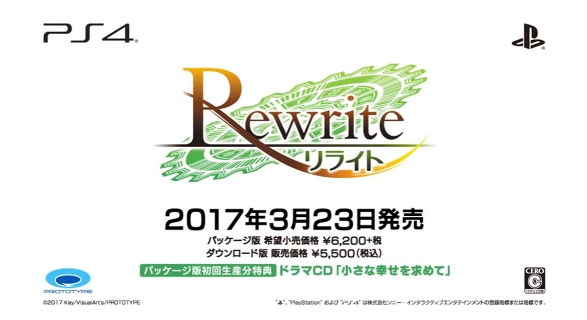 《Rewrite》故事發生在綠色都市「風祭」。居住於這座以「文明與綠色共存」為理念而興建的都市裡的天王寺瑚太朗,與神戶小鳥、吉野晴彥等夥伴過著平凡的每一天。在那麼和平的風祭市裡,每年都有一段時間特別熱鬧,那就是舉城歡慶的收穫祭。為了這個類似於文化祭的大型活動,瑚太朗開始幹起收集新聞素材的工作。