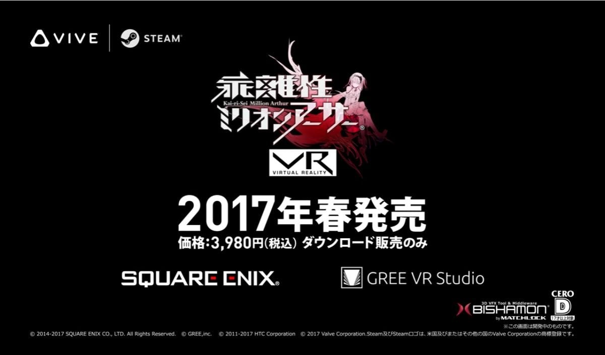 由Square Enix推出的人氣手遊《乖離性百萬亞瑟王》的VR版本遊戲《乖離性百萬亞瑟王VR》的PV公開了,有興趣的玩家可以留意。