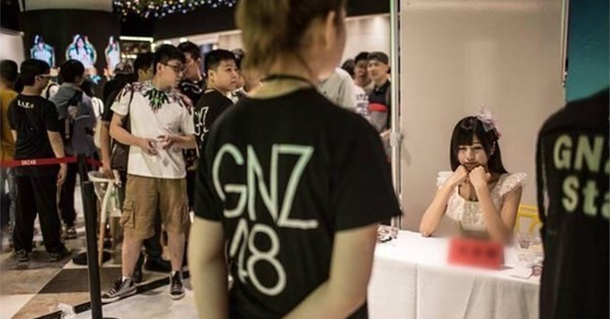 圖為某女團的握手會現場,男孩們開心的和自己的偶像交流。這個女子團體主要的特色就是經常和粉絲們近距離接觸,使得粉絲覺得她們和電視裡的明星不一樣。