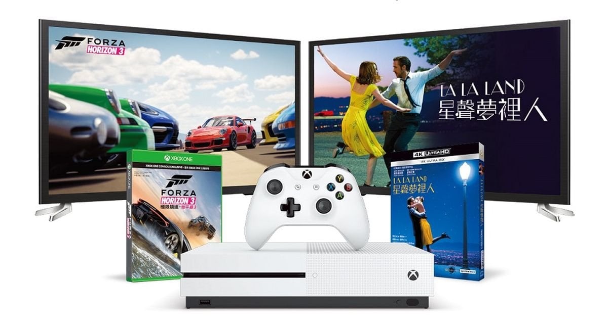 由2017年5月12日起於指定Xbox One特約零售商*購買Xbox One S《Halo Wars 2》、《Forza Horizon 3》或《FIFA 17》主機套裝,即可以港幣$99換購《La La Land》4K UHD藍光影碟及2款指定 Xbox One 遊戲,包括:《Halo Wars 2》和《Sunset Overdrive》# 或 《Dead Rising 4》和《ReCore》#。Xbox One S乃現時唯一支援4K UHD藍光碟播放的遊戲主機,並同時對應HDR及Dolby Atmos兩大最新視聽功能,將家庭電影院提升至最高層次。