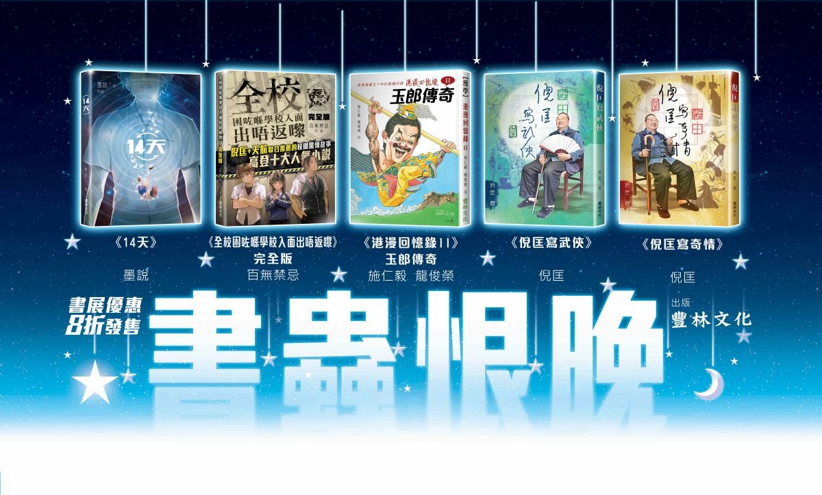 2017書展期間,讀者們只要到大眾書局攤位(Hall 1: 1C-D16)購買豐林文化出版《倪匡寫奇情》、《倪匡寫武俠》、《十四天》、《全校困咗喺學校入面出唔返嚟》完全版,就有機會 購買作家親筆簽名新書。不另收費,欲購從速,數量有限,先到先得。