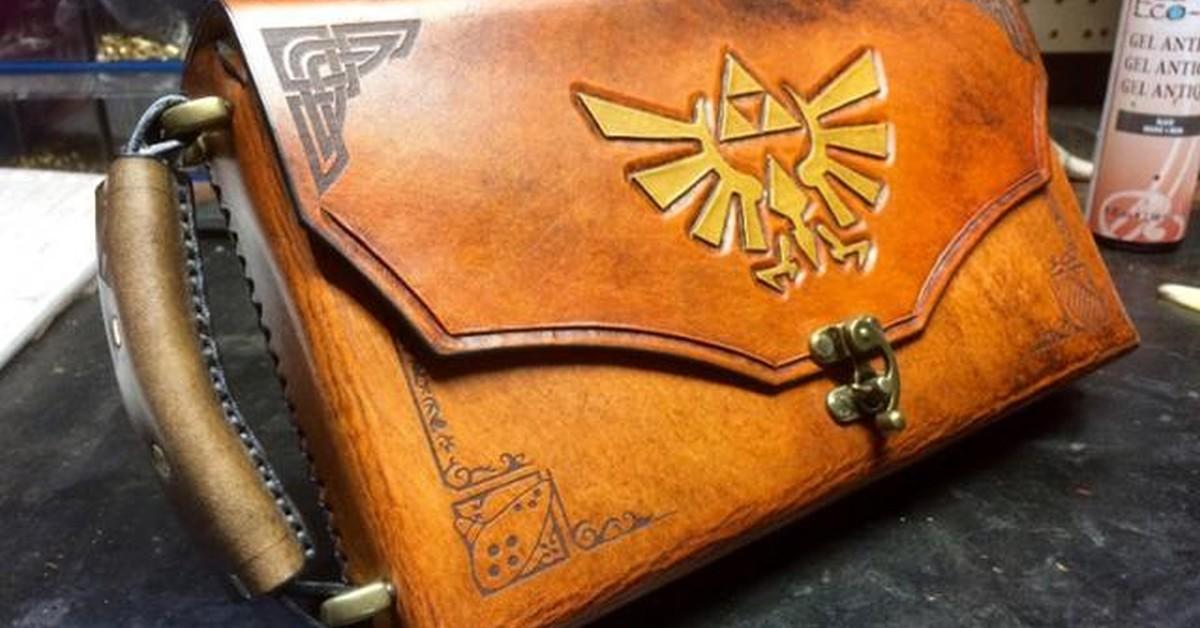 據知這是由一名為SkinzNhydez的手工藝術家製作,此前他也製作過《星球大戰》和《The Ring》的主題周邊,而這款《薩爾達:荒野之息》主題的保護包整體採用皮革製造,正面除了標誌性的logo還有銅製金屬鎖扣。此外,在保護包的背面,還有個額外的小袋,可以收納電池、卡帶等其他的一些零件,內部還非常考究的使用了羊毛作為填充,進一步增加了保護包的抗震和實用性。