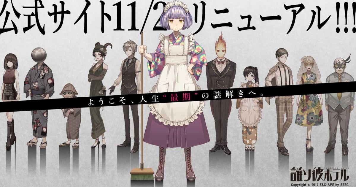 《黄昏旅店》(誰ソ彼ホテル)是由SEEC推出的逃脫手機遊戲,《黄昏旅店》為《愛麗絲的精神審判》,《四目神》以及《監獄少年》之後的第4彈新作!遊戲預定2017年推出,遊戲將會繼續遊戲系列的玩法,玩家將會在故事中解開遊戲中的謎團,和各種不同的人物角色交流將問題的關鍵得手!最後將自己所推理的結果將問題解開!遊戲宣傳語是「歡迎前來解答,人生「最後」的謎題」。而故事中玩家將會與不同的同事和客人一同離開這一個生死間的酒店!