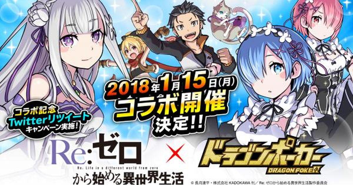 《龍族撲克》(ドラゴンポーカー)是一款將撲克牌玩法融入卡牌的手機遊戲,最多支援五人同時連線,每位玩家在戰鬥中會從牌組隨機抽出 4 張 A~K 任一數字的卡片,每位玩家隨後將各出一張牌,五個玩家出完牌後判定牌型。牌型規則與德州撲克相同,有同花、順子、葫蘆、一對等,有湊成牌組的卡片才能夠進行攻擊,越強的牌型攻擊力越高。今次和人氣動畫《從零開始異世界生活》進行合作,當中「昂」,「艾米利亞」等角色會出現在遊戲之中,而合作的時間是2018年1月15日,有興趣就不能錯過了!