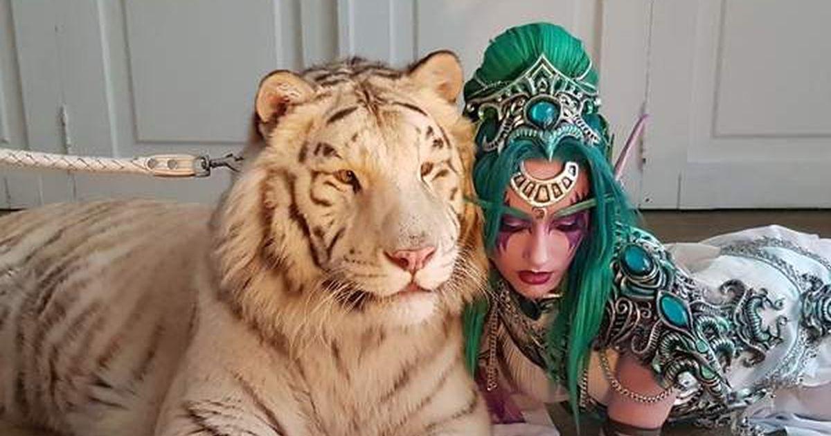 Cosplay 大愛!搵隻真老虎玩Cosplay扮夜精! 2018-02-21 11705 《魔獸》角色普遍顏值低,月之女祭司泰蘭德算是顏值比較高的,頗受玩家和Coser歡迎,不過少了白虎坐騎的泰姐姐COS始終少了一分韻味,為此,Coser @NargaLifestream就真的找來了一隻白虎,COS了一次逼真的白虎女祭司!
