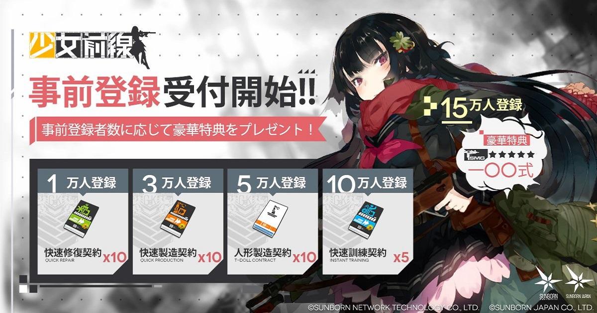 遊戲依事前登錄可以獲得獎勵,事前登錄數超過15萬更可獲得★ 5角色「一OO式」衝鋒槍!