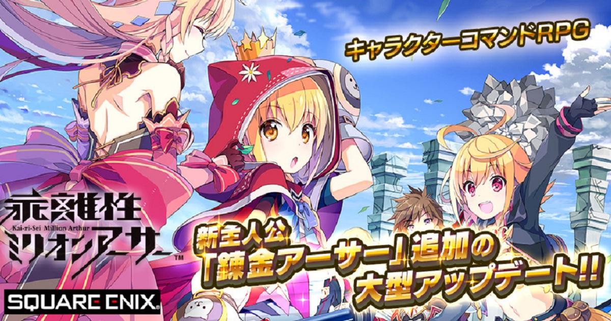 Square Enix 旗下的卡牌RPG手機遊戲《乖離性百萬亞瑟王》進行了大型更新,在本次更新中將會破天荒加入第五職業「錬金亞瑟」,同時追加新章故事及専用任務,「錬金亞瑟」將會以既有的4名亞瑟使用不同的戰鬥系統,令戰鬥組合更多元化。