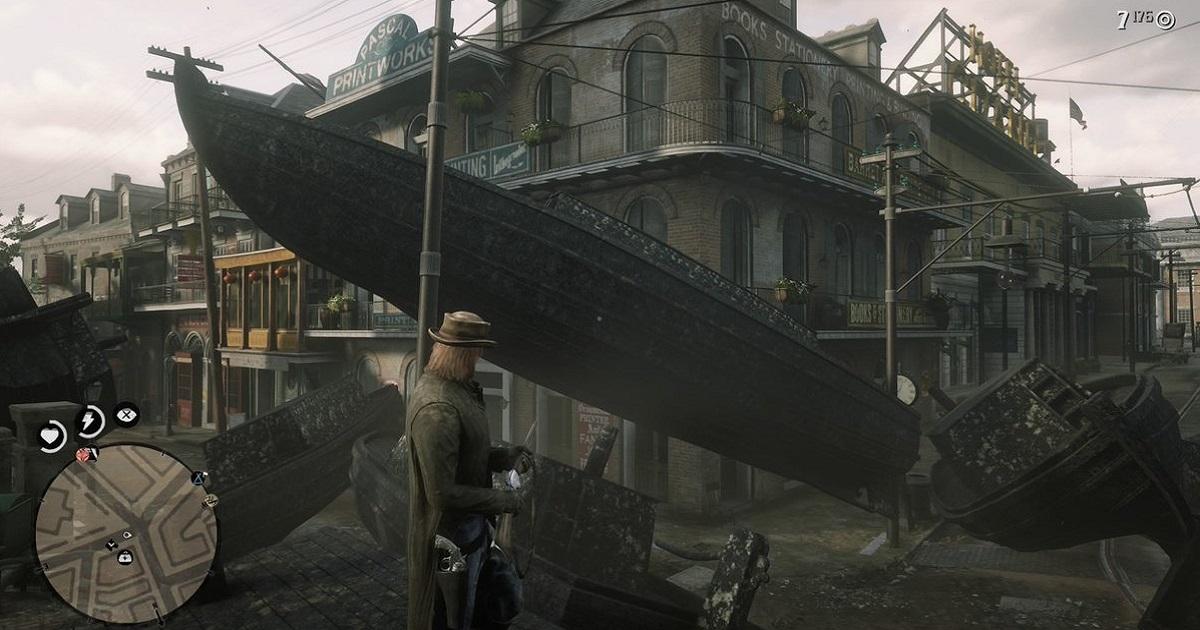 最近有多位玩家都遇到同樣的 BUG,在《Red Dead Redemption Online》中,大家進入城市「聖丹尼」時,都見到城市街道上佈滿蒸汽船的殘骸,一個不小心就被船圍困了。