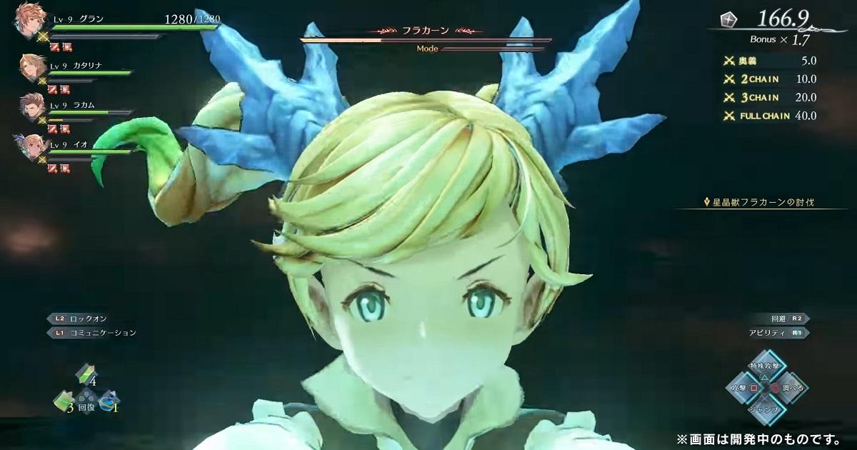 官方在舞台上公開了遊戲的最新 Trailer 以及即場試玩片段,遊戲以《碧藍幻想》的主要角色格蘭、露莉亞、碧、卡塔莉娜、拉卡姆、伊歐、蘿賽塔等等「古蘭賽法號」騎空團成員為主,組成 4 人隊伍冒險的 ARPG 遊戲。