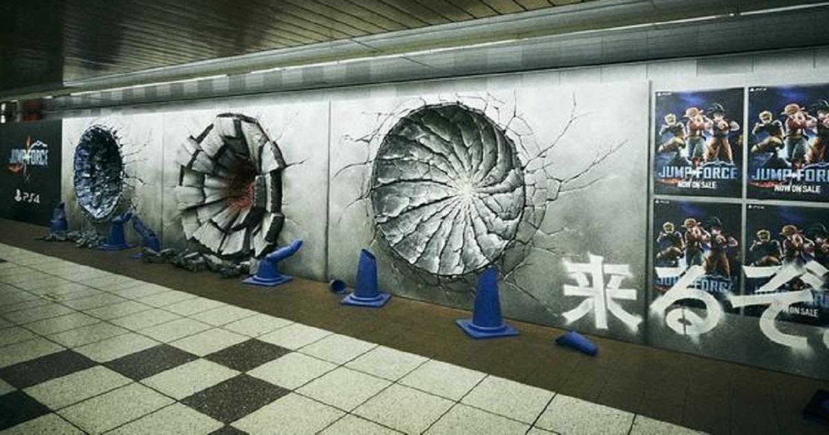 為配合新作遊戲宣傳,Sony Interactive Entertainment 與 BANDAI NAMCO Entertainment 合作在東京新宿地鐵站設置了一個造型裝置藝術「Jump Hero's Wall」,在 2 月 18 日至 2 月 24 日期間展出,模仿由《JUMP FORCE》三大主角的必殺技打出的痕跡。