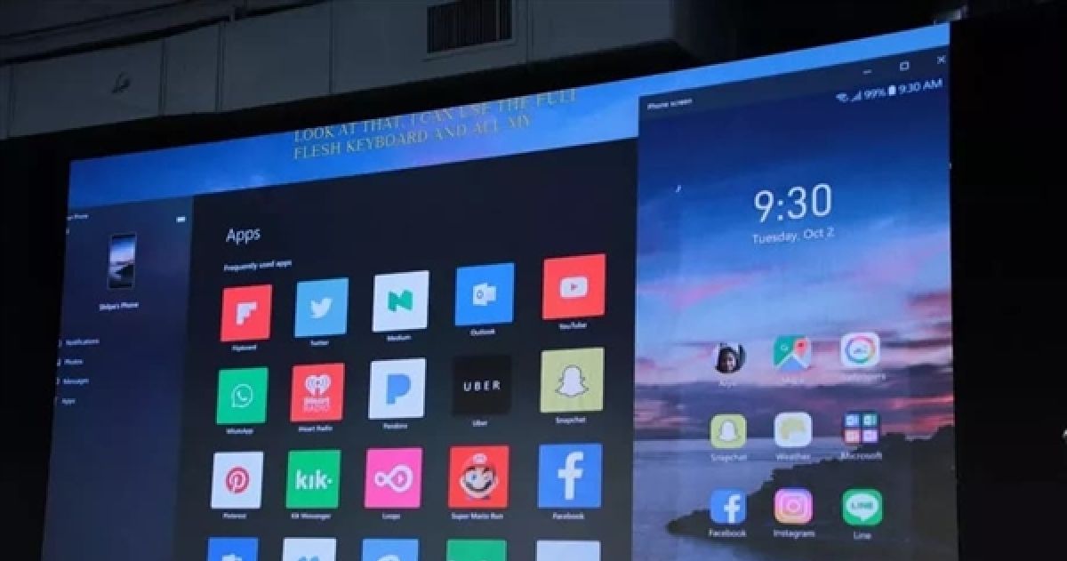 按照微軟去年10月在Surface大會上的演示,開啟鏡像投屏功能後,電腦這方會列出手機內安裝的所有程序。更給力的是,當手機裡的Snapchat、WhatsApp有新消息後,可以直接在PC端進行操作。
