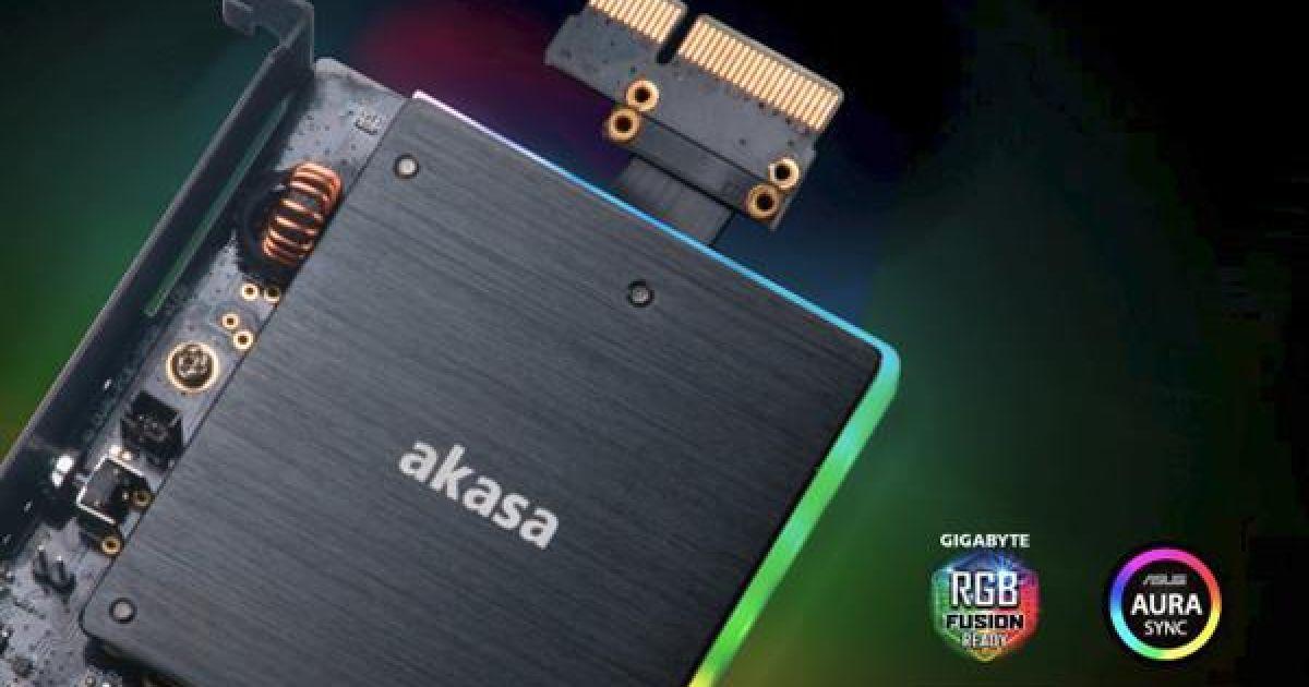 對於一些老舊平台,沒有M.2插槽是個問題,這時候就需要M.2轉接卡了,知名廠商Akasa推出了一款M.2轉PCIe適配器,支持2個M.2硬碟,還有RGB燈及散熱片,可以說是完美的M.2轉接卡了。