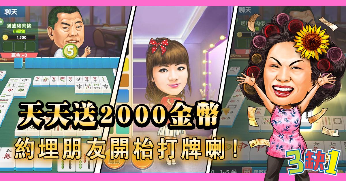 每日免費送2000金幣,5秒極速配台,唔怕三缺一!不論想打一手局、一圈局,打幾大都任你揀!