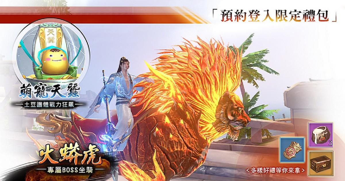 即日起只要至活動頁完成《武動乾坤》預約登入,就送你林動的好夥伴、史上最強「火蟒虎」當你的專屬坐騎,外加超級可愛的萌寵「天蠶土豆」,超猛坐騎+萌寵,真的是超級夢幻組合啊!不僅如此,更可獲得預約登入專屬的「青陽符使」限定稱號,加上雙倍經驗值功效的「中品石符靈液」以及1000綁金,這麼大的禮包,真的錯過就找不到啦!
