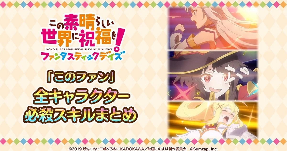 官方近日公開了《為美好的世界獻上祝福!美好日子》遊戲中,初期登場的 19 位角色的必殺技演出,包括劇中登場過的名場面與一些新角色技能,有興趣的玩家先來觀賞一下吧!