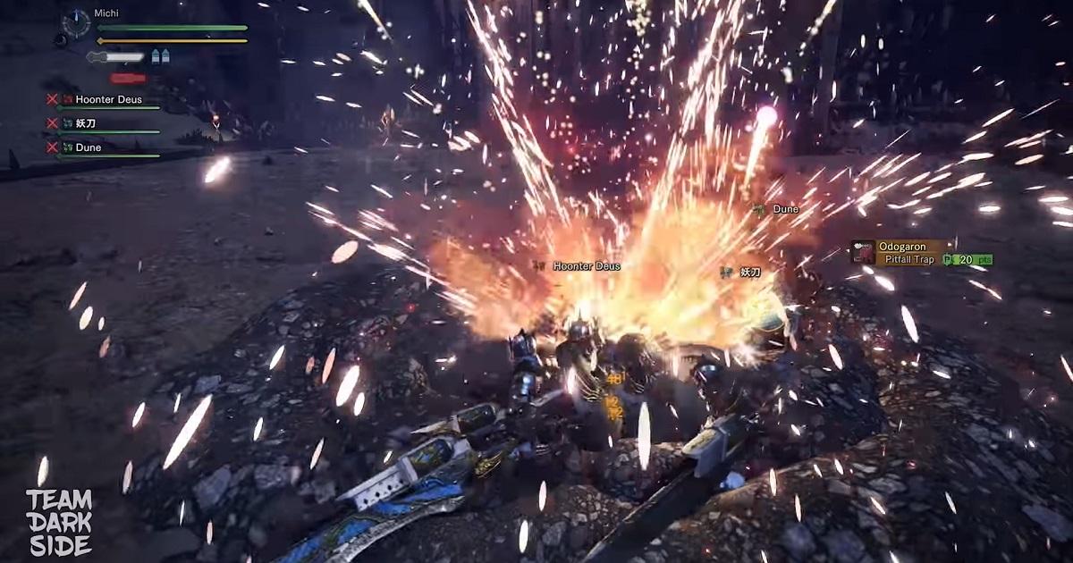 玩法其實很簡單,4 名隊員全員裝備技能「投射器裝填數 UP」 LV 5、「耳塞」LV 5,慘爪龍中了陷阱後 4 人一起用銃槍的特殊技能「起爆龍杭」,再放煙花來引爆起爆龍杭的特殊爆炸攻擊,並不斷放陷阱來確保慘爪龍不會跑掉,不出 1 分鐘 30 秒就活活炸死一隻。