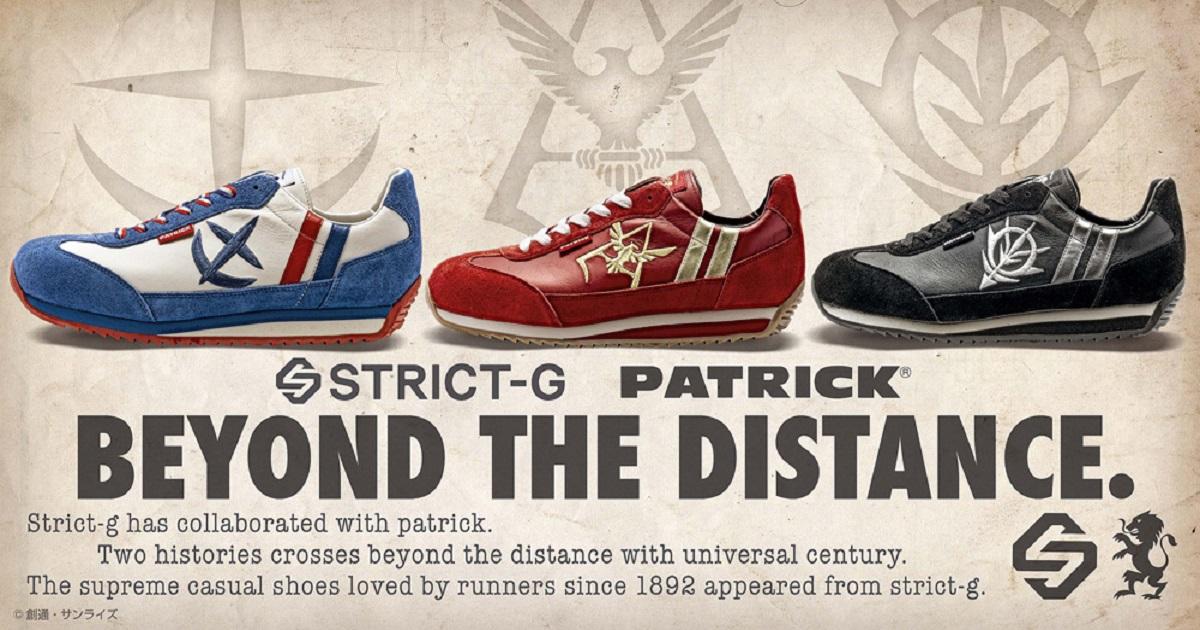 休閒鞋品牌 PATRICK 今天宣佈與《機動戰士高達》合作,推出STRICT-G × PATRICK」系列運動鞋,共有地球聯邦軍、自護公國、紅彗星 3 種款式,各售 24,200 日圓 (約 $ 1700 港幣) ,由5 月 11 日起至 5 月 15 日期間接受網上預訂!