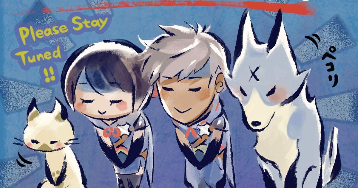 在貼文之下,還附了一張漫畫風的藝術畫,可以看出,畫上有卡通化的男女獵人、經典隨從艾露貓,以及最近公佈的新隨從牙獵犬。