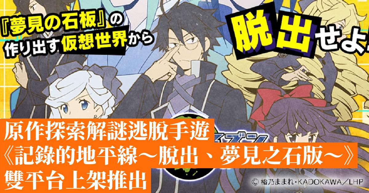 《記錄的地平線~脱出、夢見之石版~》是以原作《記錄的地平線》改編的全新解謎逃脱手遊,以使用者記憶創作出封閉迷宮的道具「夢見之石版」作主題,講述城惠等人挑戰「夢見之石版」的考驗,逃出神秘迷宮。