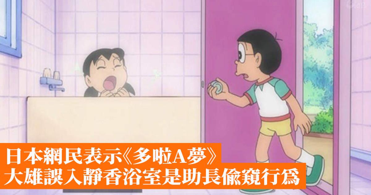 據報導,日本網友「蟲真綠野」要求朝日電視台和《哆啦A夢》製作公司刪除大雄誤入靜香浴室的場景,理由是這很容易助長偷窺女性洗澡的行為,而且會在現實生活中給女性心理蒙上陰影。