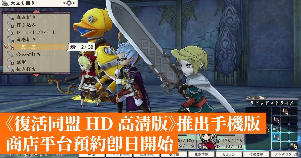 《復活同盟 HD 高清版》是 2019 年 10 月在 PS4 / Switch / PC 平台推出,初代 3DS 《復活同盟》的高清重製版,如今這款作品終於要移植到手機平台了!iOS / Android 手機版預定 2021 年初冬推出,今天起開始 App Store / Google Play 商店平台預約。