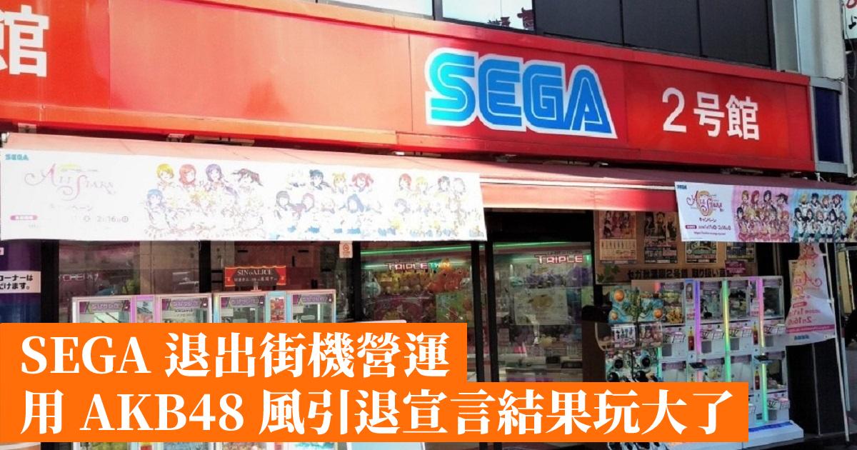 SEGA 正式退出街機營運業務,旗下的街機店舖官方 Twitter 就發了一編文章,以「AKB48 畢業風格」來進行告知,全文如下: