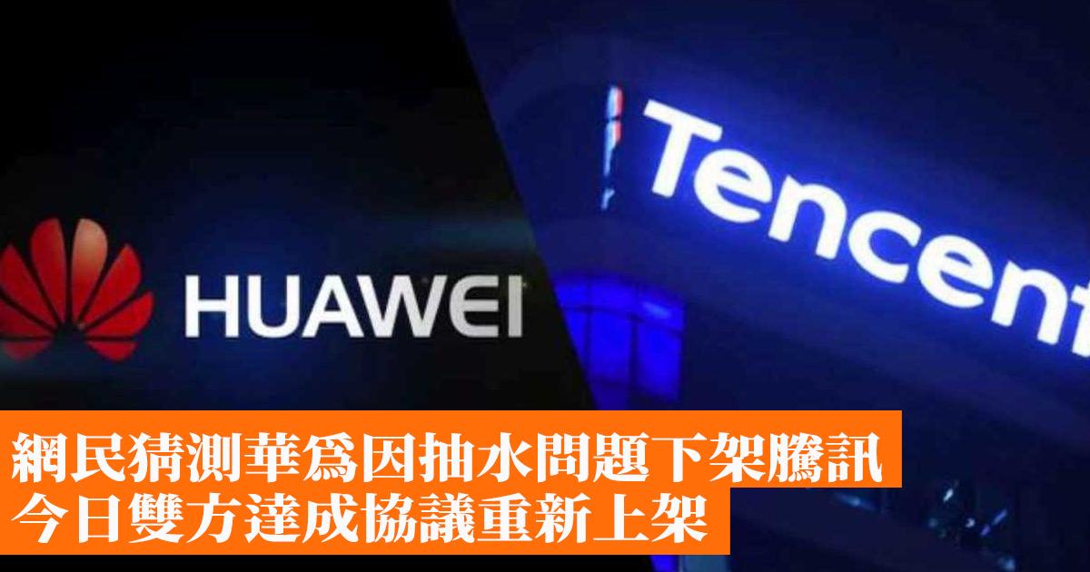 網民猜測華為因抽水問題下架騰訊 今日雙方達成協議重新上架