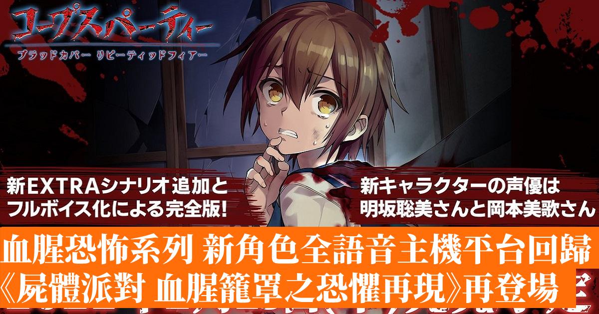 《屍骸派對 血腥籠罩之恐怖再現》是 2010 年推出 PSP 平台遊戲,今次除了將遊戲完整移植到 PS4 / Switch 平台外,更加入了 2 名角色「石見涼香 (CV:岡本美歌)」、「白夢美九 (CV:明坂聰美)」,以及全新 EXTRA 追加故事,並且將遊戲劇情全語音化。