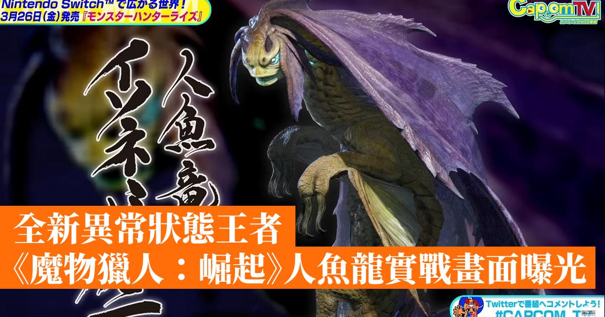 Capcom 於昨晚官方直播節目「Capcom TV!」上介紹多款新作遊戲,其中包括預定 3 月 26 日推出的 Switch 新作《魔物獵人:崛起》實機畫面,今次為玩家帶來了本作新登場魔物「人魚龍」與新地區「寒冷群島」的實戰影片。(影片 2:18:25 - 2:24:55)
