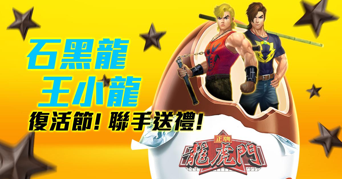 復活節又點少得豐富嘅活動同獎勵呢,由龍虎門三皇嘅代表王小龍、石黑龍將係呢個節日裡,派發豐厚嘅大禮包,助各位龍虎群英戰力再度提升,從而繼續鋤強扶弱,儆惡懲奸!
