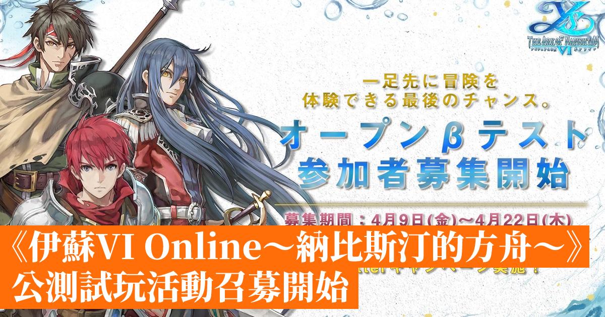 官方今天宣佈手機遊戲《伊蘇VI Online~納比斯汀的方舟~》將會在 4 月 23 日至 4 月 29 日期間舉行公開 β 測試活動,並在今天 4 月 9 日起開始召募申請,登記日期至 4 月 22 日為止。
