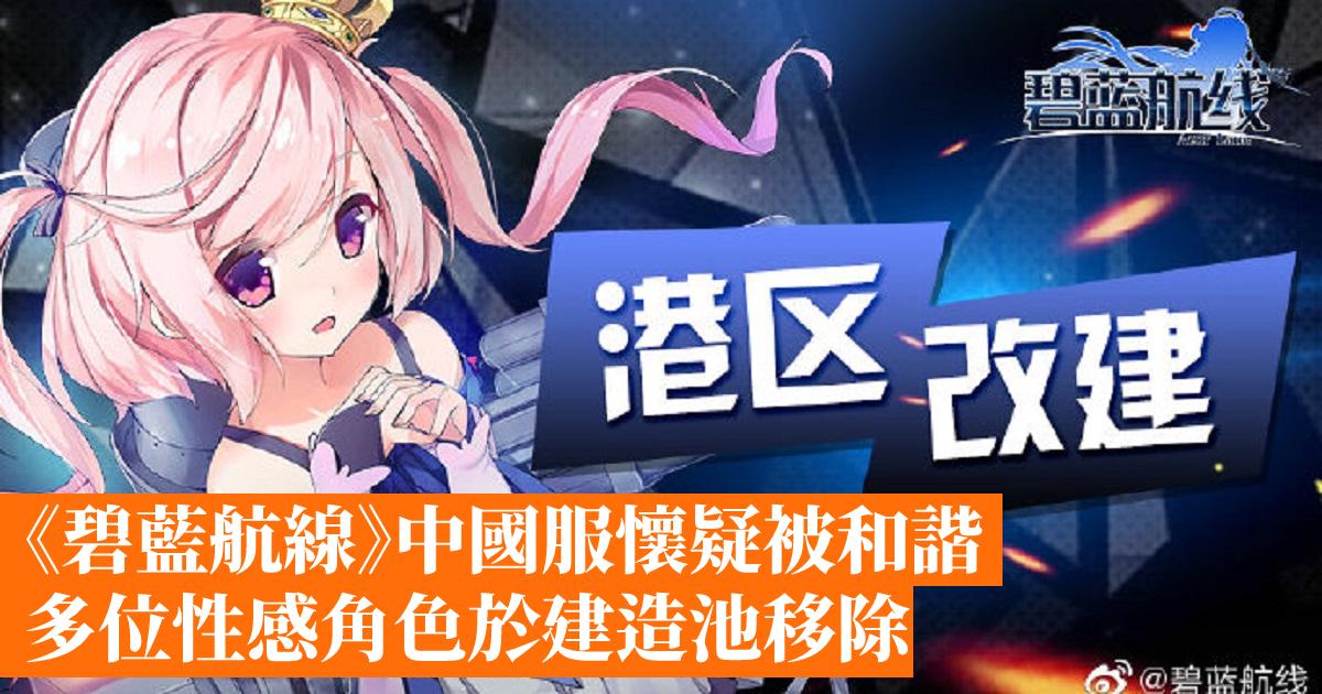 中國 Yostar 開發的手機遊戲《碧藍航線》近日推出了更新,將多位遊戲角色於建造池中移除,懷疑是遊戲被和諧而進行了相關的更新。