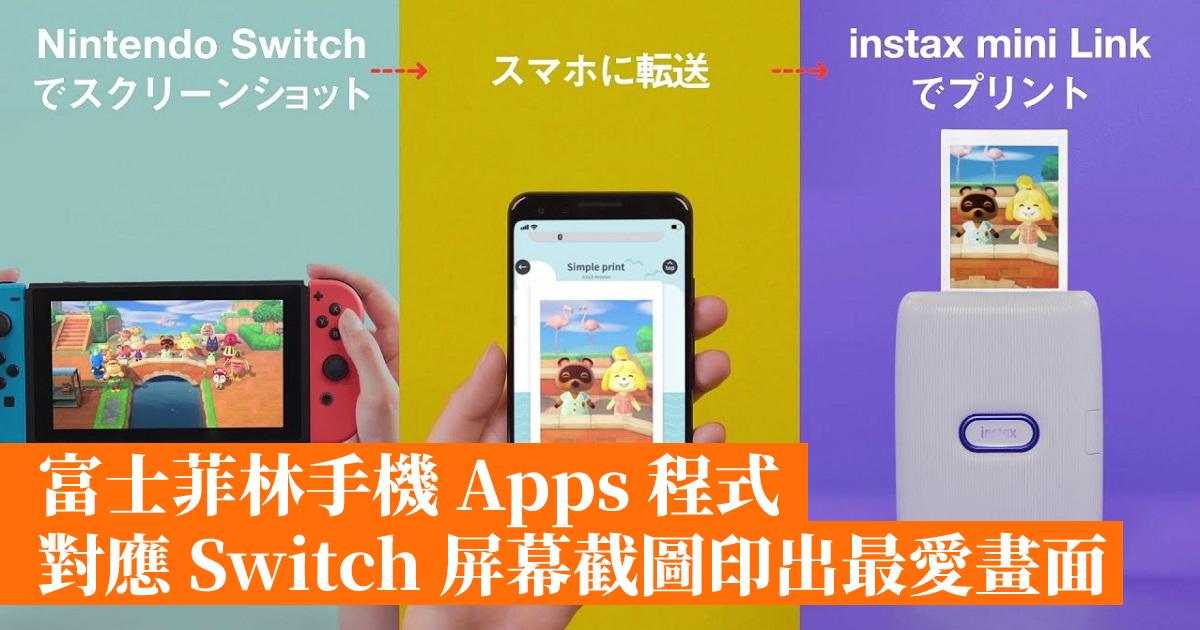 應用程式可以讓玩家將 Nintendo Switch 的遊戲屏幕截圖傳送到手機進行加工,並透過 Apps 連結到打印機「instax mini Link」,從而影印出自己喜歡的遊戲截圖相片。