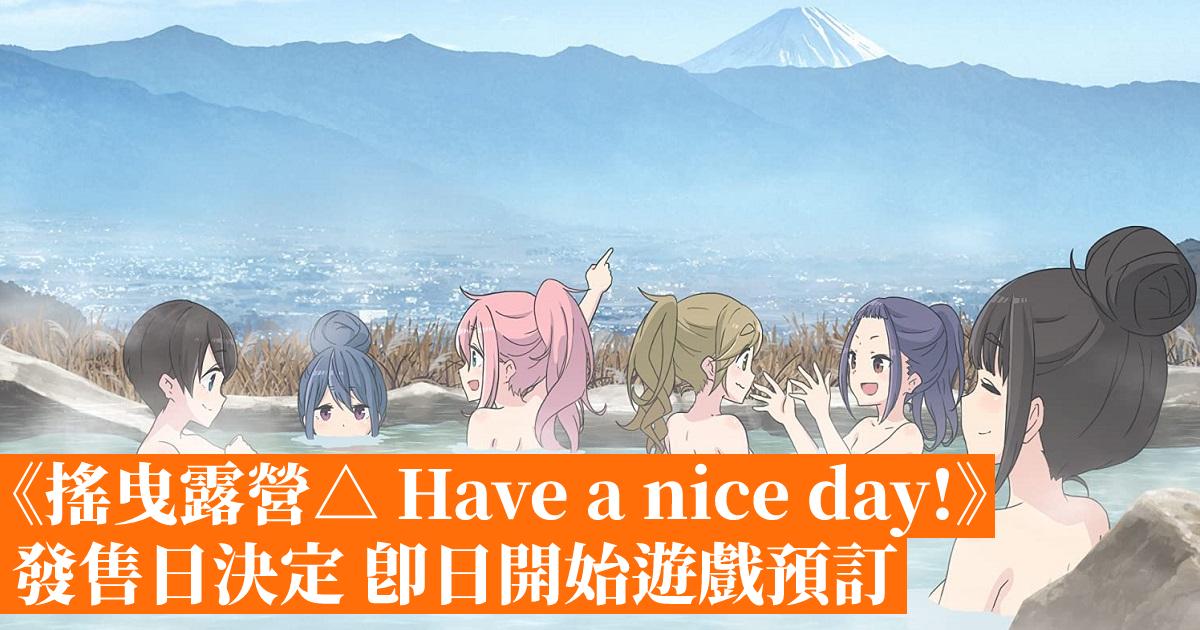 《搖曳露營△ Have a nice day!》是改編自人氣動畫《搖曳露營△》的新作 Switch / PS4 主機平台冒險遊戲,玩家將會以「各務原撫子」或「志摩凜」的視點,按故事發展選擇不同的選項,並影響著露營與故事的發展,更加入了電視動畫不一樣的 if 故事體驗,《搖曳露營△》的粉絲絕對不能錯過!