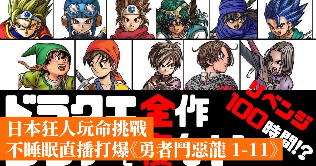日本直播主 Akino(あきの) 於 4 月 28 日晚上開始這項挑戰,以不睡眠進行直播,直至打爆《勇者鬥惡龍 1-11》共 11 款系列作品為止,規則包括「盡可能快速爆機」、「不會使用大 BUG 加快遊戲進度」、「3 分鐘以上沒有操作、不說話、閉目養神 3 次為之失敗」、「只會在上廁所等必須時間離開」、「洗澡時會改為聲音直播證明沒有睡覺」。