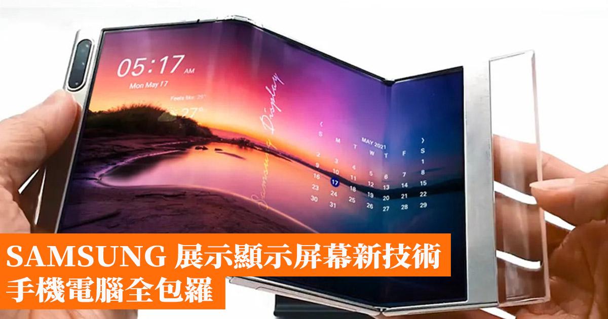 SAMSUNG 還展示了兩個超大屏幕面板的概念,包括一個17寸的可折疊OLED屏幕,折疊後為平板大小,展開後可作為獨立顯示器使用。