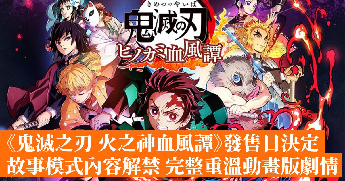 《鬼滅之刃 火之神血風譚》正式決定 2021 年 10 月 14 日發售,同時公開了遊戲最新 PV,介紹本作的單人故事模式,單機模式收錄電視動畫版「竈門炭治郎立志編」至劇場版「無限列車編」的所有劇情,玩家可以在遊戲中體驗與一眾強敵戰鬥的經典劇情。
