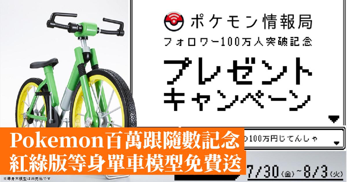 Pokemon百萬跟隨數記念 紅綠版等身單車模型免費送