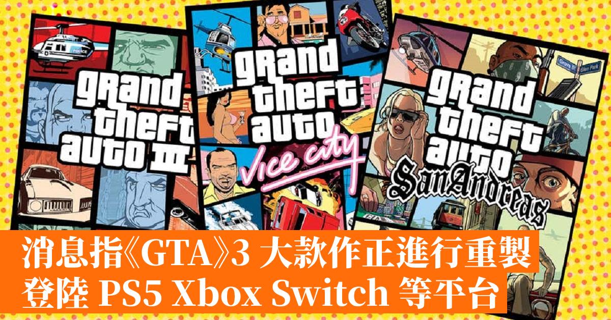 外媒 kotaku 表示獲消息人士證實,《GTA》3 款經典作《GTA 3》、《GTA 罪惡城市》與《GTA 聖安地列斯》正進行重製,並由負責開發重製遊戲的 Rockstar Dundee 工作室負責,該工作室還負責次世代主機版《GTA V》與《GTA Online》,三款遊戲都會使用虛幻引擎開發,以新舊圖形混合形式重新製作,並且盡可能忠於 PS2 時代的 GTA 遊戲。