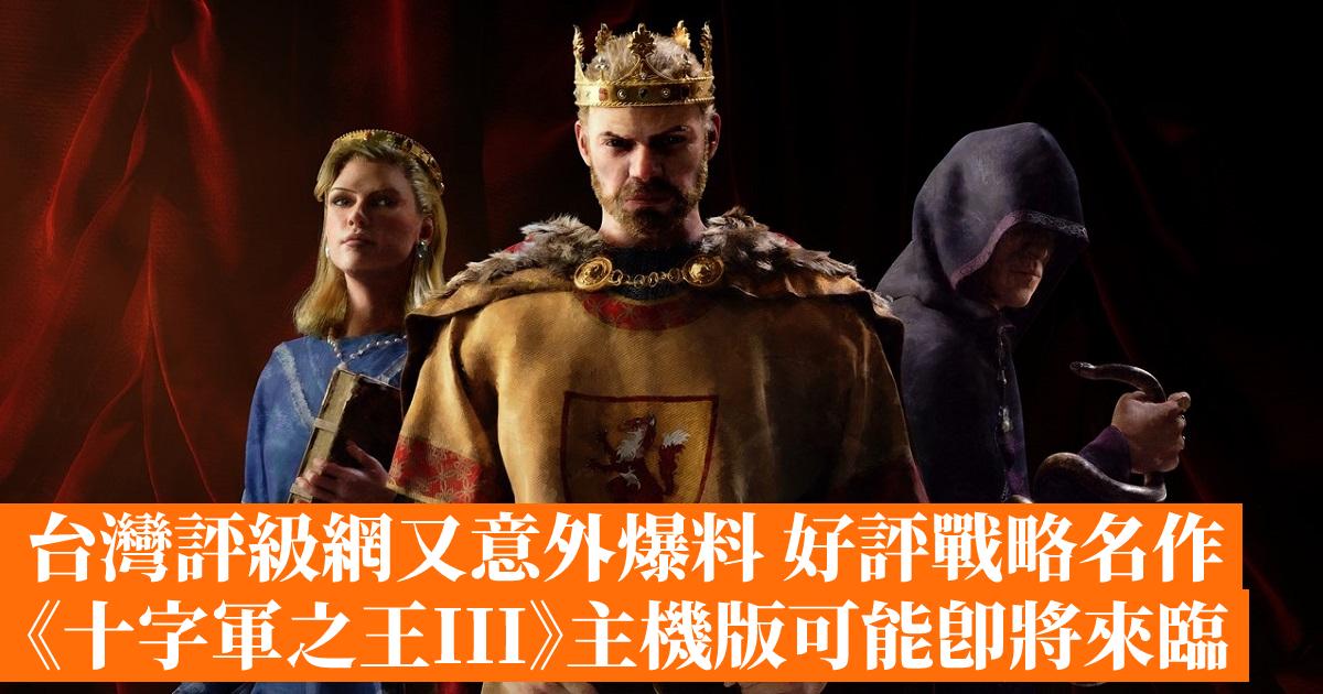 近日外媒報導指,台灣數位娛樂軟體分級網站又再意外爆料,列出了未發表的戰略遊戲《十字軍之王III》的 PS5、Xbox One 與 Xbox Series X│S 平台版本,並由發行商 H2 Interactive 代理發售,很有可能支援繁體中文,網站現已刪除相關資料。