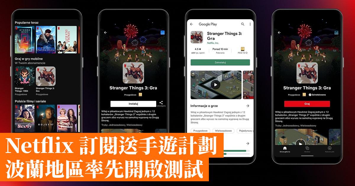Netflix 早前曾預告過會把遊戲加到會員訂閱服務之中,今天終於正式在波蘭地區開始測試計劃,由即日起開始向波蘭的訂閱會員免費發佈《怪奇物語:1984》和《怪奇物語3》兩款 Android 手機遊戲。