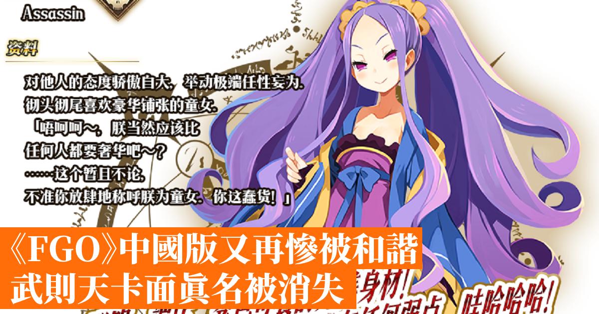 近日《FGO》的中國版官方微博發文宣佈,於 9 月 14 日起進行英靈角色的卡面與名稱更新,4 星暗殺者角色「武則天」慘被全面和諧。