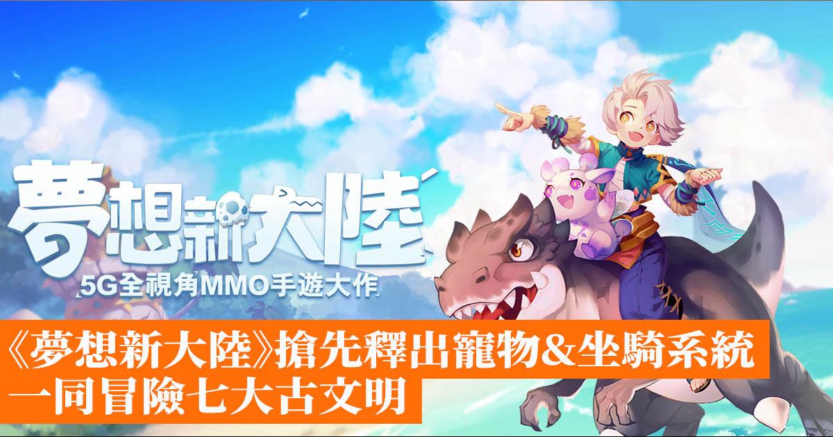 坐騎系統在《夢想新大陸》最具有特色,當玩家獲得寵物後,都有寶寶、幼年、成年三種階段,只要將寵物培養到成年後,就自動解鎖成為「坐騎」。每隻坐騎都能額外提升戰鬥力,戰鬥過程中還會施放不同的強力主動技能,幫助玩家打敗強大的敵人。